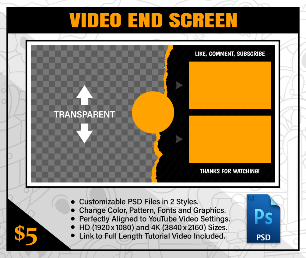 This Video End Screen can be edited in Adobe Photoshop